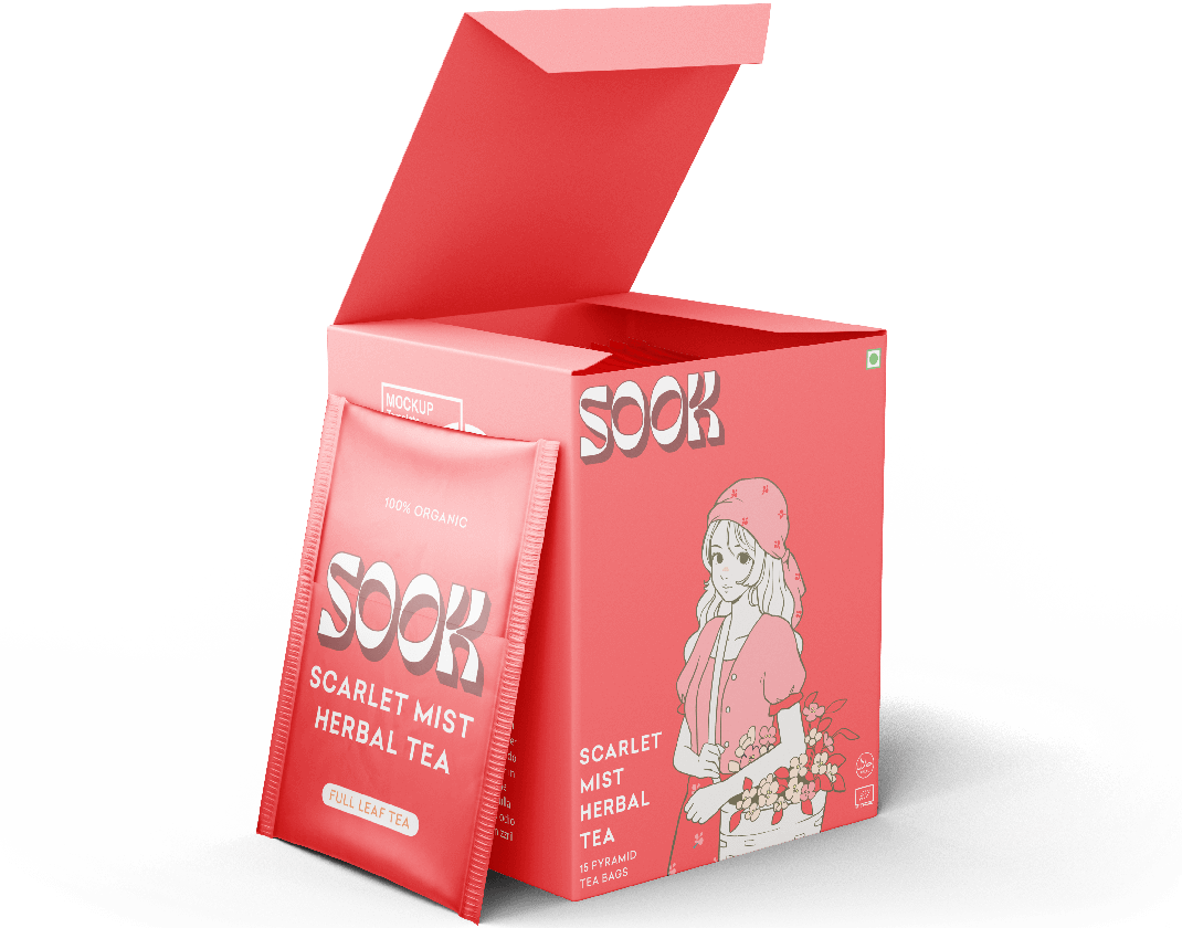 Scarlet Mist Herbal Tea presents itself as a captivating infusion of colors. As the tea blossoms within your cup, a rich, scarlet hue emerges, reminiscent of twilight skies and deep passions. The infusion is alive with vibrant tones, a visual tribute to the blend’s principal ingredient, Hibiscus. Its striking red shade, intensified by the play of light, creates a mesmerizing spectacle that invites you to explore the sensory journey that awaits.